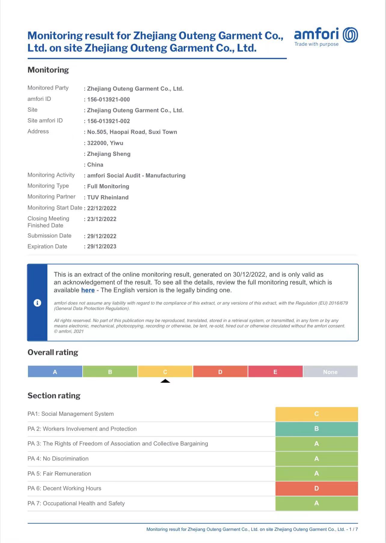 浙江歐騰服飾有限公司位于世界小商品之都-義烏。創(chuàng)立于2015年,是一家專業(yè)生產(chǎn)無(wú)縫針織運(yùn)動(dòng)服飾和內(nèi)衣的工貿(mào)一體企業(yè),擁有自主出口權(quán)。 工廠的占地面積約16000平方米 ,引進(jìn)了大型圣東尼、高騰等多種先進(jìn)的制衣設(shè)備300余臺(tái)。月產(chǎn)能可達(dá)90萬(wàn)件。 歐騰服飾每年投入近百萬(wàn)資金打樣開(kāi)發(fā)新產(chǎn)品,有著一支高素質(zhì)設(shè)計(jì)、技術(shù)員工隊(duì)伍。工廠先后通過(guò)了ISO 9001質(zhì)量管理體系認(rèn)證、BSCI認(rèn)證、GRS認(rèn)證、OEKO-TEX國(guó)際生態(tài)紡織品認(rèn)證等多項(xiàng)專利檢測(cè)報(bào)告。可提供OEM&ODM服務(wù)。歐騰服飾以一套完整、科學(xué)的質(zhì)量管理體系,生產(chǎn)的服裝從原材料紗線到成衣,質(zhì)量完全能夠滿足國(guó)內(nèi)、國(guó)際質(zhì)量要求。獲得了客戶一致好評(píng)。工廠先后獲得省科技型企業(yè)、國(guó)家高新企業(yè)、義烏市誠(chéng)信講信用單位、規(guī)上企業(yè)、信用AAA級(jí)等榮譽(yù)。